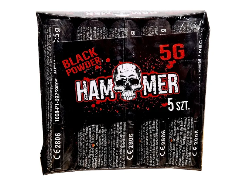 Opakowanie zawiera 5 sztuk petard lontowych o gramaturze 5g/szt czarnego prochu