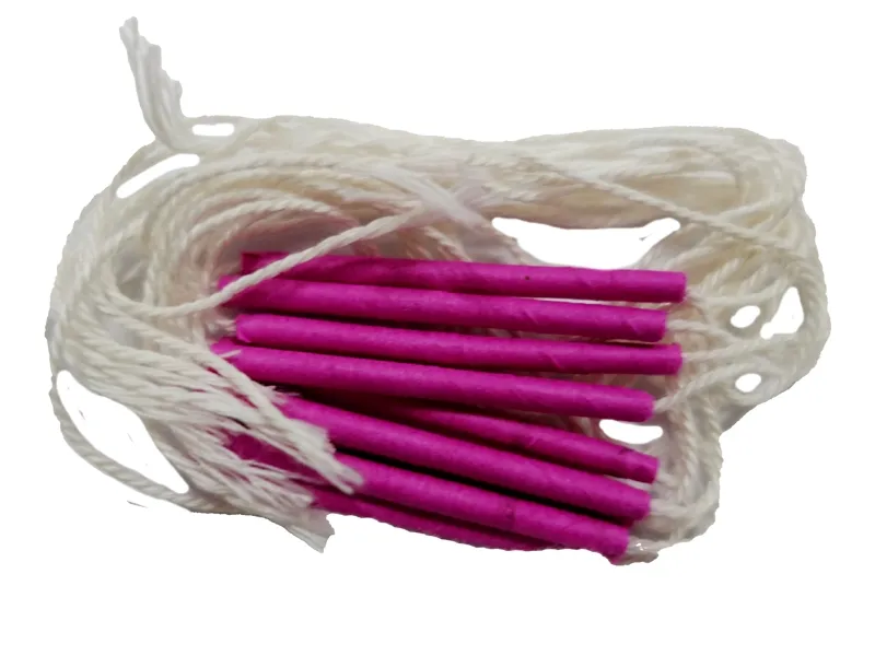 Strzelający sznurek. Opakowanie zawiera 12 szt sznurków. Pociągnięcie za przeciwległe końcówki sznurka powoduje wystrzał