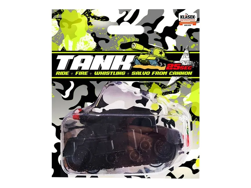 Fontanna Czołg Tank DP1TA od firmy klasek. Ciekawy gadżet - fontanna w nietypowym wydaniu. Posiada efekt iskrzenia oraz kraklingu. Po odpaleniu lontu czołg zaczyna iskrzyć, a następnie odjeżdża.