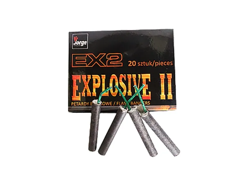 Opakowanie 20 sztuk petard lontowych z błyskiem Wymiary 1 petardy (w mm): 8x45 Wymiary opakowania ( w mm) :80X80X15