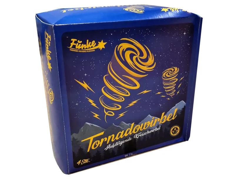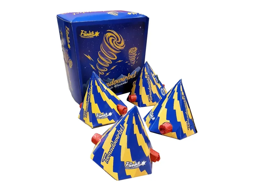 Bączek z efektem wirowania i iskrzenia oraz gwizdu, po którym produkt wzbija się w powietrze wciąż iskrząc.
