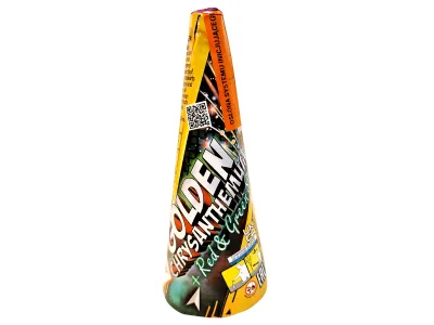 Fontanna stożkowa efekt: złote iskry przechodzące w kolorowe iskry z trzeszczeniem