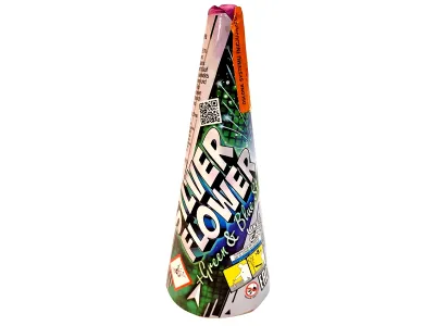 Fontanna stożkowa. Efekt: Srebrne iskry z zielonymi i niebieskimi gwiazdkami