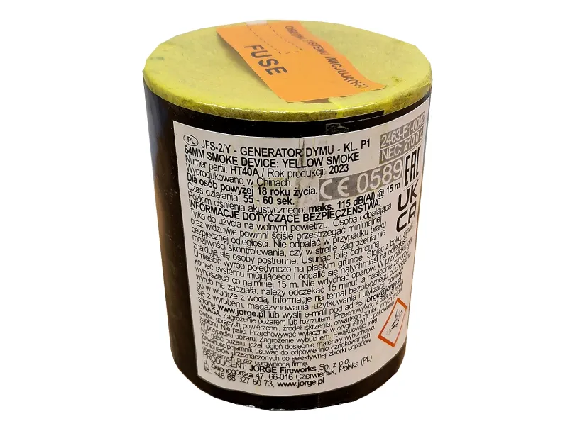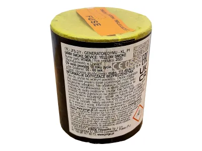 Profesjonalny dym od firmy Jorge. Szczególnie polecany dla fanów ASG, Paintballa. Generator żółtego dymu bardzo intensywny kolor i duże zadymienie.