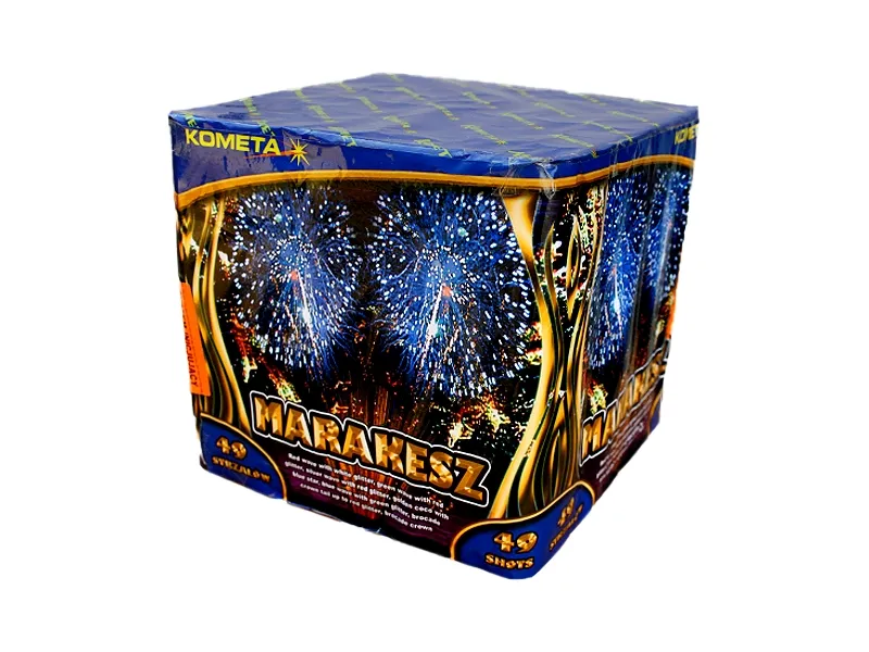 Efekty: CZERWONE ISKRZĄCE SIE OGONY MIENIĄCE SIĘ BIAŁYM BROKATEM, ZIELONE ISKRZĄCE SIE OGONY MIENIĄCE SIE CZERWONYM BROKATEM, SREBRNE ISKRZĄCE OGONY MIENIĄCE SIĘ CZERWONYM BROKATEM, ZŁOTE KOKOSY NA TLE NIEBIESKICH GWIAZD, NIEBIESKIE ISKRZĄCE OGONY MIENIĄCE SIĘ ZIELONYM BROKATEM, KOMETY BROKATOWYCH KORON WYBUCHAJĄCE CZERWONYM MIENIĄCYM SIĘ BROKATEM, BROKATOWE KORONY.