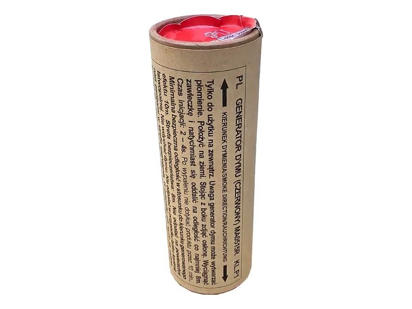 Dwustronny generator dymu o intensywnym czerwonym zadymieniu. Bardzo dobra jakość i duże zadymienie. Idealne do ASG i na Paintball lub dowolne imprezy plenerowe. Produkt odpalany za pośrednictwem pociągnięcia zawleczki. Czas działania: ok. 60 sek