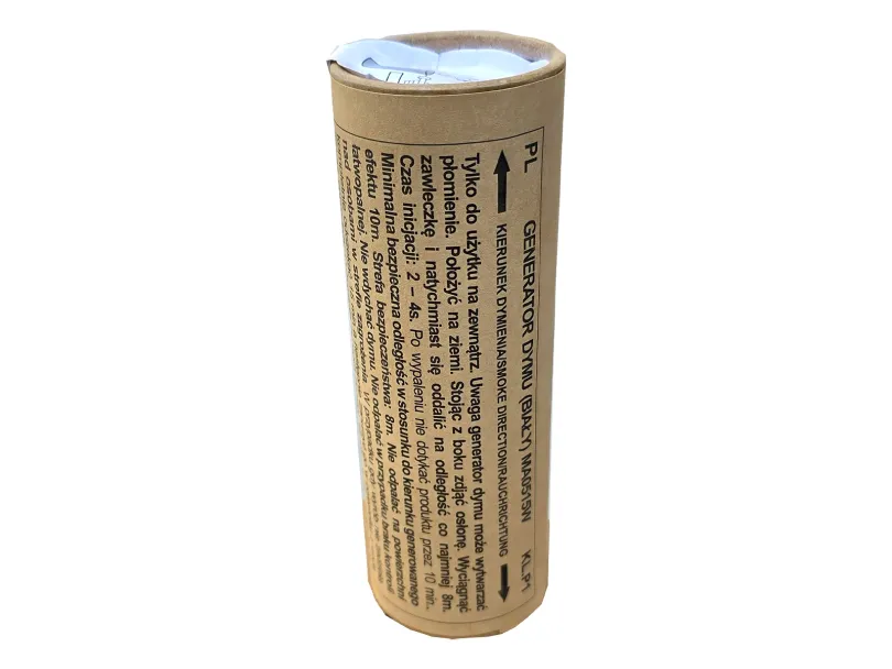Produkt odpalany za pośrednictwem pociągnięcia zawleczki. Czas działania: ok. 60 sek