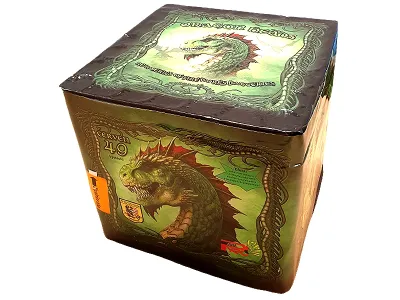 Kolekcja Smoków od Czeskiego importera Pyro Moravia. 49 strzałów Kaliber 30mm Ogromne złote palmy z czerwonymi, zielonymi i niebieskimi peoniami przechodzące w tytanowe chrysantemy.