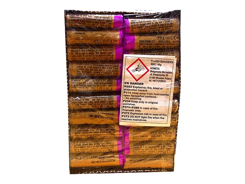 Opakowanie 20 sztuk petard lontowych z flarą. Efekt: huk