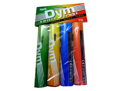Zestaw 4 sztuk świec dymnych w kolorze zielonym, niebieskim, żółtym, czerwonym. Cena za zestaw