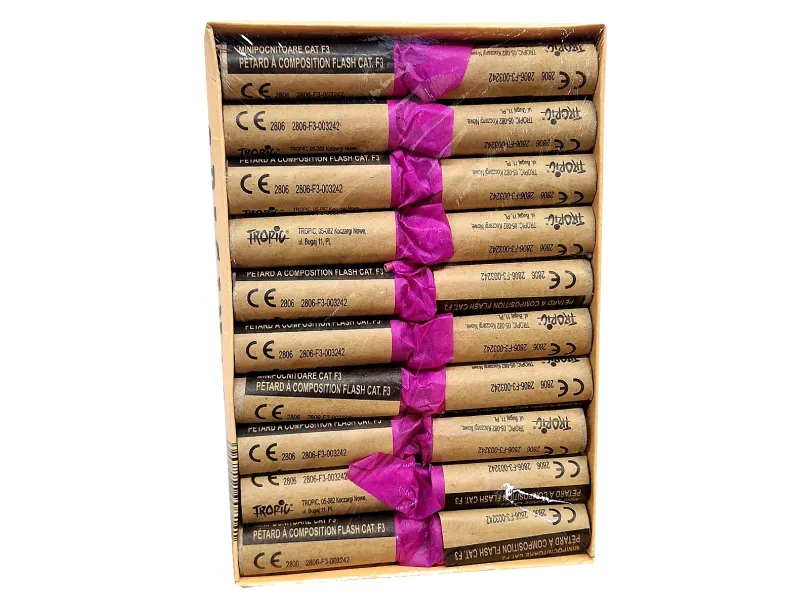 Opakowanie 20 sztuk bardzo głośnej petardy lontowej Podukt posiada certyfikat CE kat.3