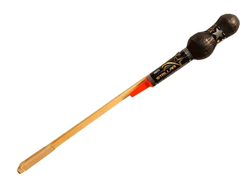 Bardzo duża rakieta o podwójnym ładunku. Jedna rakieta = dwa efekty! Długość rakiety to 133cm. Brokatowa chrysantema przechodząca w złotą palmę z trzeszczeniem..