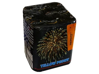 Bateria 9 strzałów 20mm o efekcie żółtej peoni. Mała bateria wymaga ustabilizowania przed odpaleniem np poprzez obłożenie ciężkimi przedmiotami (cegły, kamienie)