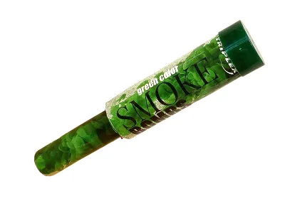 Świeca dymna o intensywnym zielonym zadymieniu z rączką . Idealne do ASG i na Paintall lub dowolne imprezy plenerowe. Bardzo dobry produkt do opraw meczowych z racji swojej małej wielkości Produkt odpalany za pośrednictwem pociągnięcia zawleczki. Czas działania: ok. 60 sek
