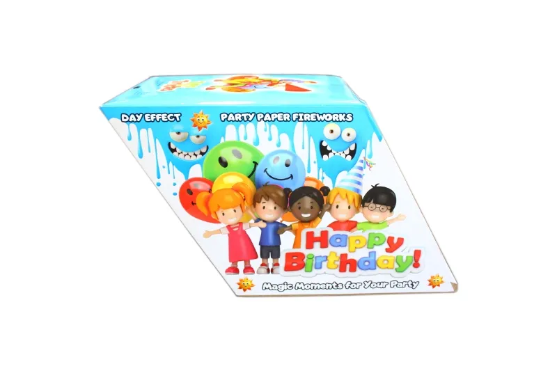 Spadający deszcz kolorowych serpentyn długości 7m, lecące na odległość ok 9m.