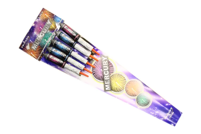Opakowanie 5 sztuk rakiet, efekty: czerwona i zielona piwonia, czerwona fala z białym migotaniem. Cena za opakowanie!
