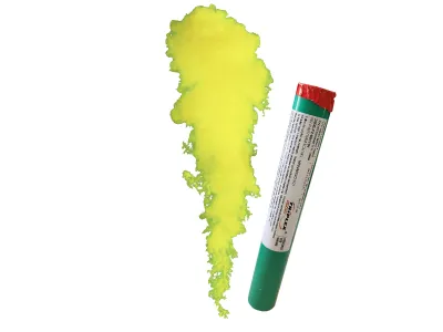 Mina dymna w kolorze żółtym. Intensywny jednorazowy wyrzut dymu w kolorze żółtym.